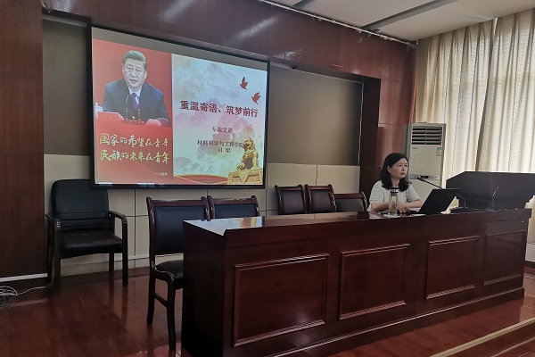 7月30日下午,jbo竞博官网登录《重温寄语、筑梦前行》专题党课在材料楼601报告厅开讲。学院党委书记吕珺结合习近平总书记对青年的寄语以及研究生学习与工作实际,为学院2019级全体研究生党员上专题党课。