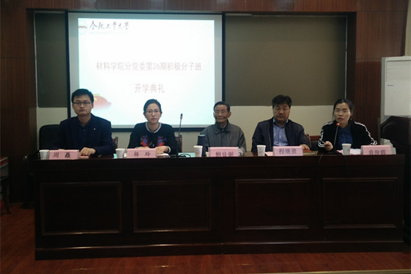 4月5日下午,jbo竞博官网登录分党校第26期积极分子班开学典礼在材料楼601会议室隆重召开。校关工委“五老”报告团副团长鲍良弼老师、jbo竞博官网登录党委书记程继贵老师、jbo竞博官网登录党委副书记、副院长杨玲老师、分党校积极分子班班主任及本期全体入党积极分子参加了开学典礼。
