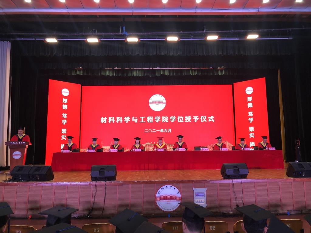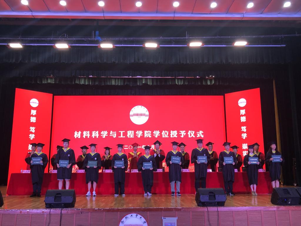 学院院长张久兴宣读了《jbo竞博官网登录关于授予2021届毕业生学位的决定》,授予卫陈龙等8名博士研究生博士学位、肖广顺等144名硕士研究生硕士学位、余秋君等305名本科生学士学位。随后,主席台领导、老师为获得学位的全体学生颁发学位证书、扶正流苏,并与毕业生合影留念。