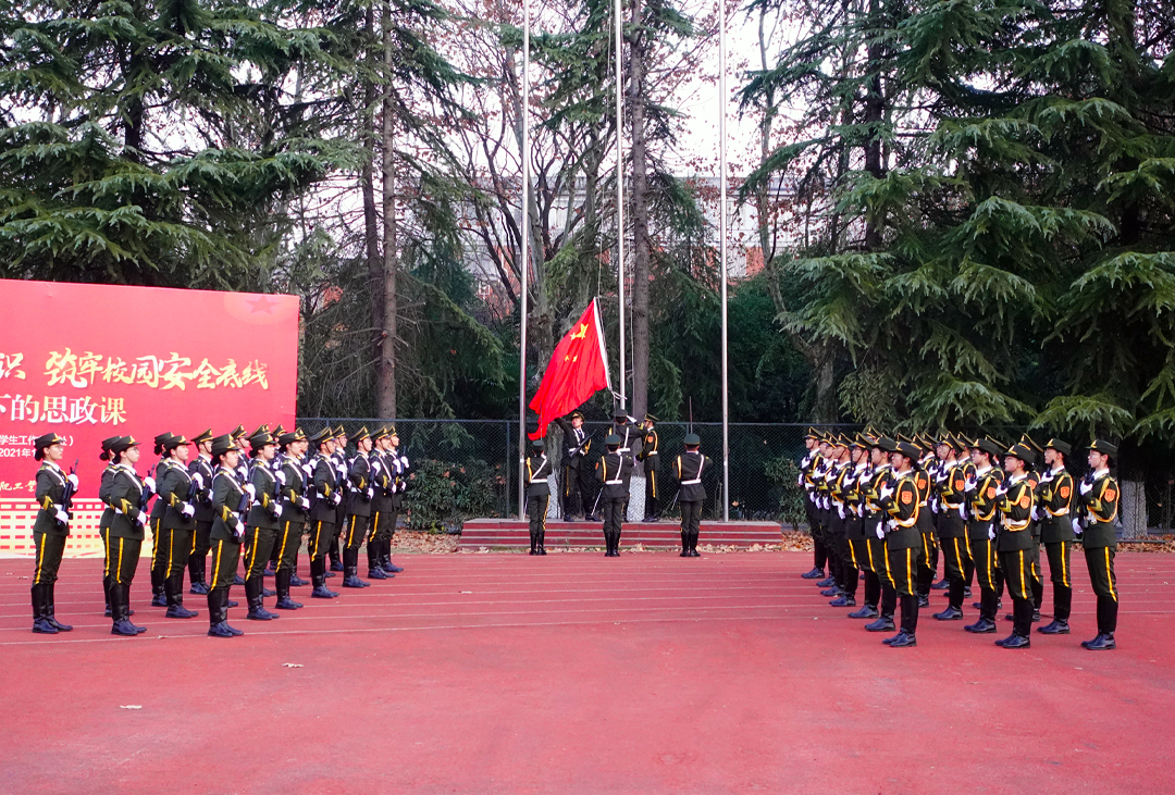 12月27日清晨,jbo竞博官网登录在学校屯溪路校区举行以“增强风险防范意识,筑牢校园安全底线”为主题的特殊升旗仪式暨国旗下的思政课。