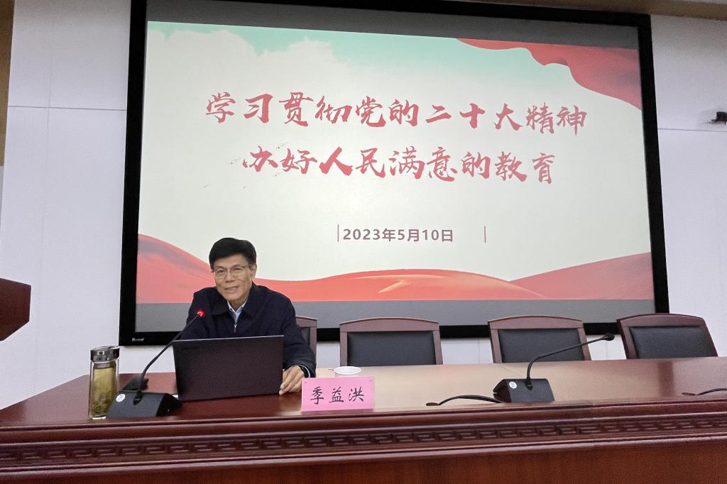 季益洪指出,“办好人民满意的教育”是党和国家对人民的庄严承诺,也是全面建设小康社会进程中的时代课题。要深刻领悟二十大报告关于“科教强国战略,强化现代化建设人才支撑人才”的重大部署,并结合学校“双一流”建设目标、学院实际情况,进一步深刻理解“完善科技创新体系”“实施创新驱动发展战略”“实施人才强国战略”系列重大战略的深远意义。