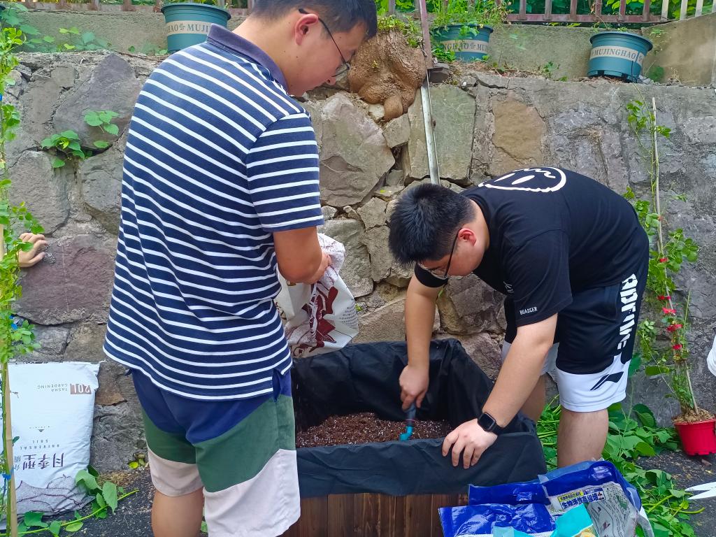 本次纪念花卉种植活动由学院毕业生自发组织。种植现场,毕业生们热情高涨,分工协作。装箱运土、搬运花苗、培土施肥、栽种浇水,和师长同窗一起种下充满青春记忆的花苗。栽种完成后,毕业生们将印有“长材茂学,繁花似锦——jbo竞博官网登录二零二二届毕业生留念”纪念牌郑重地挂上花箱,并邀请老师同学在花前合影留念。
