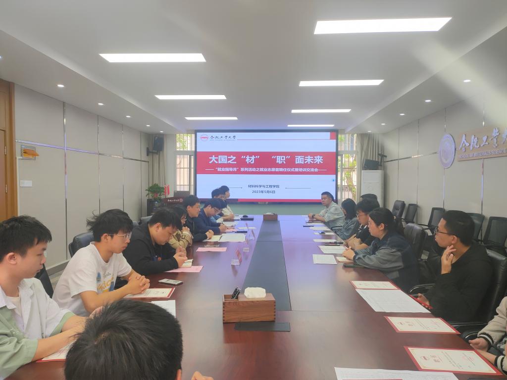 5月6日上午,jbo竞博官网登录在屯溪路校区材料楼综合服务中心210举办2024届毕业生就业志愿者聘任仪式暨培训交流会。学院相关负责人、2024届毕业班辅导员和全体就业志愿者参会。
