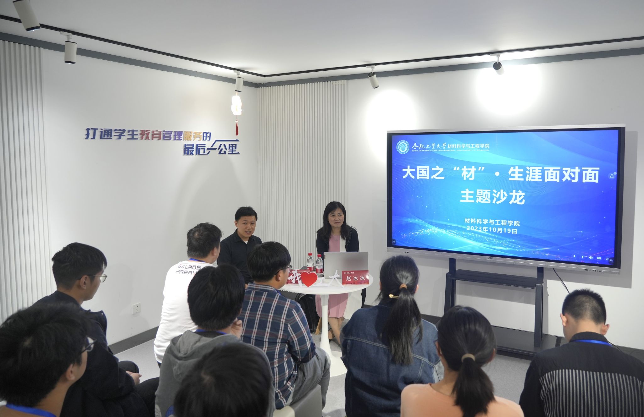 10月19日下午,jbo竞博官网登录在屯溪路校区七号楼学生社区“沙龙空间”举办“大国之材——生涯面对面”主题沙龙活动。海信集团工会副主席、行政后勤中心副总经理、学院2000届校友赵冰冰担任分享嘉宾。学院党委副书记兼纪委书记朱峰主持,2024届毕业班辅导员和30余名学生代表参加活动。
