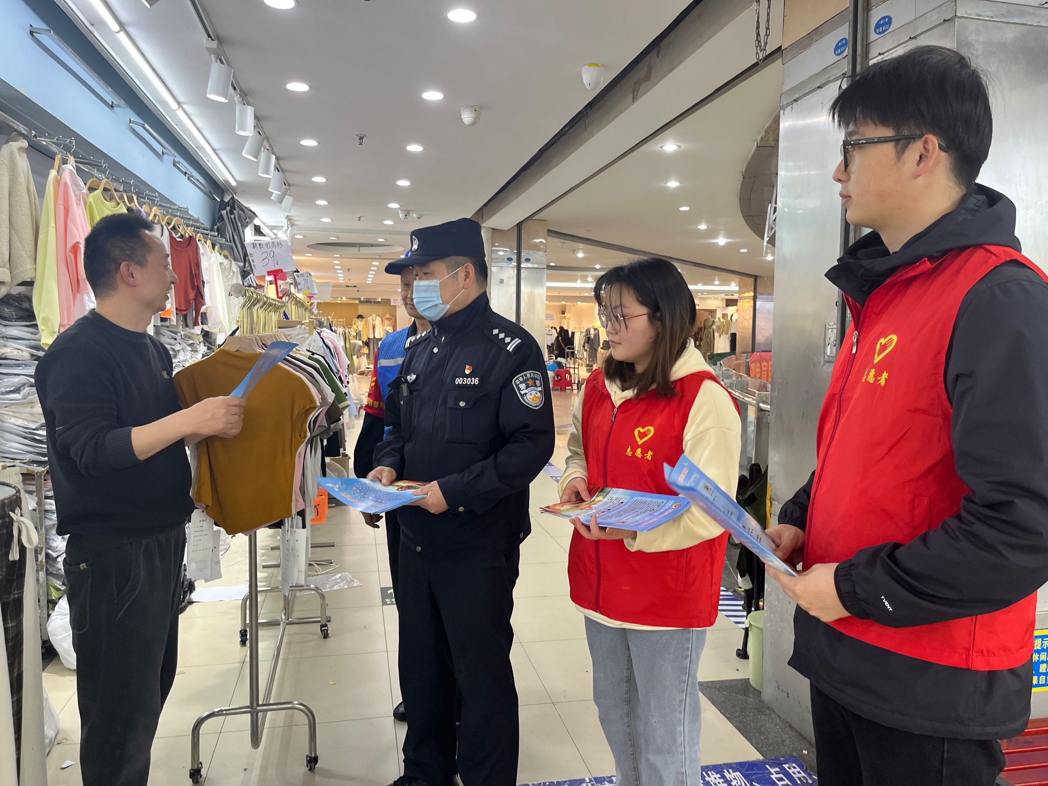 近日,安徽省“样板支部”、jbo竞博官网登录本科生第二党支部赴合肥市长淮街道白马服装城开展反诈宣传活动。长淮街道、团工委和长淮派出所相关负责人、本科生第二党支部学生代表参与本次活动。