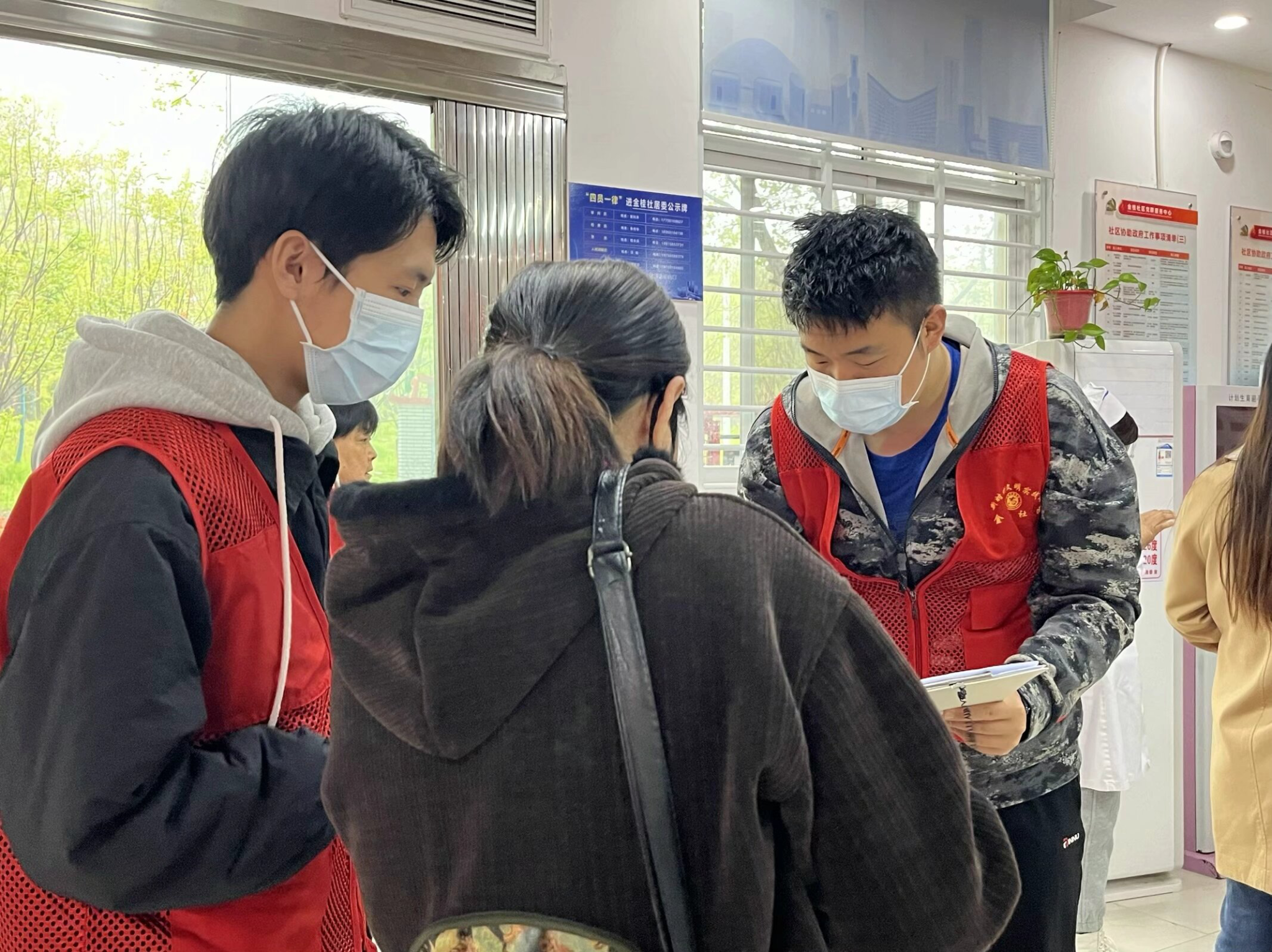 活动中,前来检查咨询的居民络绎不绝,志愿者们在金贵社区工作人员的指导下快速分工协作,组织现场居民根据各自检查需求有序排队,协助现场医护人员开展免费量血压、测血糖活动和个性化健康咨询等服务,并针对居民提出的各类需求和建议做好一一登记、汇总和反馈。对现场有行动困扰、沟通困难的老年群体,志愿者们耐心细致,热情服务,令现场的居民倍感温暖。活动后,志愿者们协助社区工作人员整理义诊数据,并对现场环境、社区活动室进行整理。