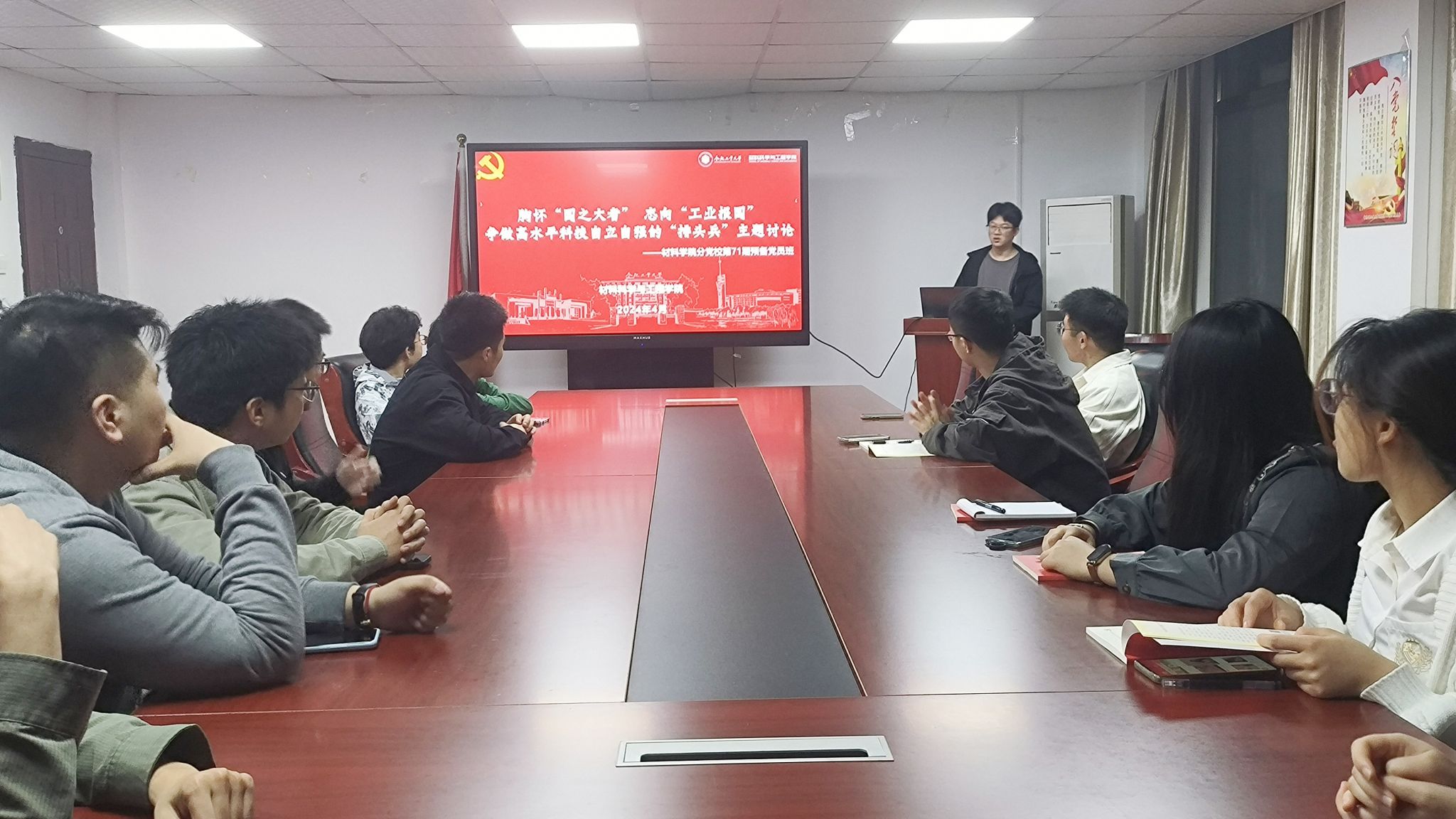 4月12日及13日晚,jbo竞博官网登录党校第71期预备党员班全体学员分两个校区开展了“强国有我,材料先行”主题讨论,旨在充分发挥党校阵地作用,教育引导党校学员以实际行动支持国家工业建设和科技发展,努力成为高水平科技自立自强的领军者。
