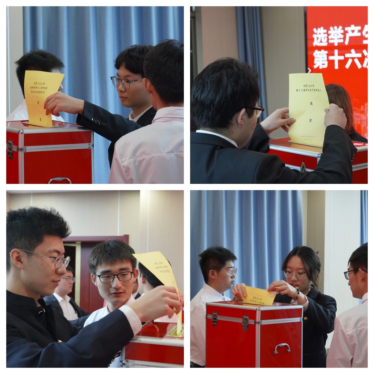 2021级辅导员刘苏婷介绍了新一届学生会和研究生会主席团成员的基本情况。2023级辅导员葛海涛和2022级刘琬菁分别介绍了出席jbo竞博官网登录第十六次学生代表大会暨第六次研究生代表大会各位代表候选人的基本情况。随后学院全体学生代表和研究生代表分别投票选举了新一届学生会主席团成员和研究生会主席团成员。大会一并选举产生了出席jbo竞博官网登录第十六次学生代表大会和暨第六次研究生代表大会学院的11名本科生代表和6名研究生代表,由学院学工办副主任兼团委副书记马贤峰老师宣读选举结果。