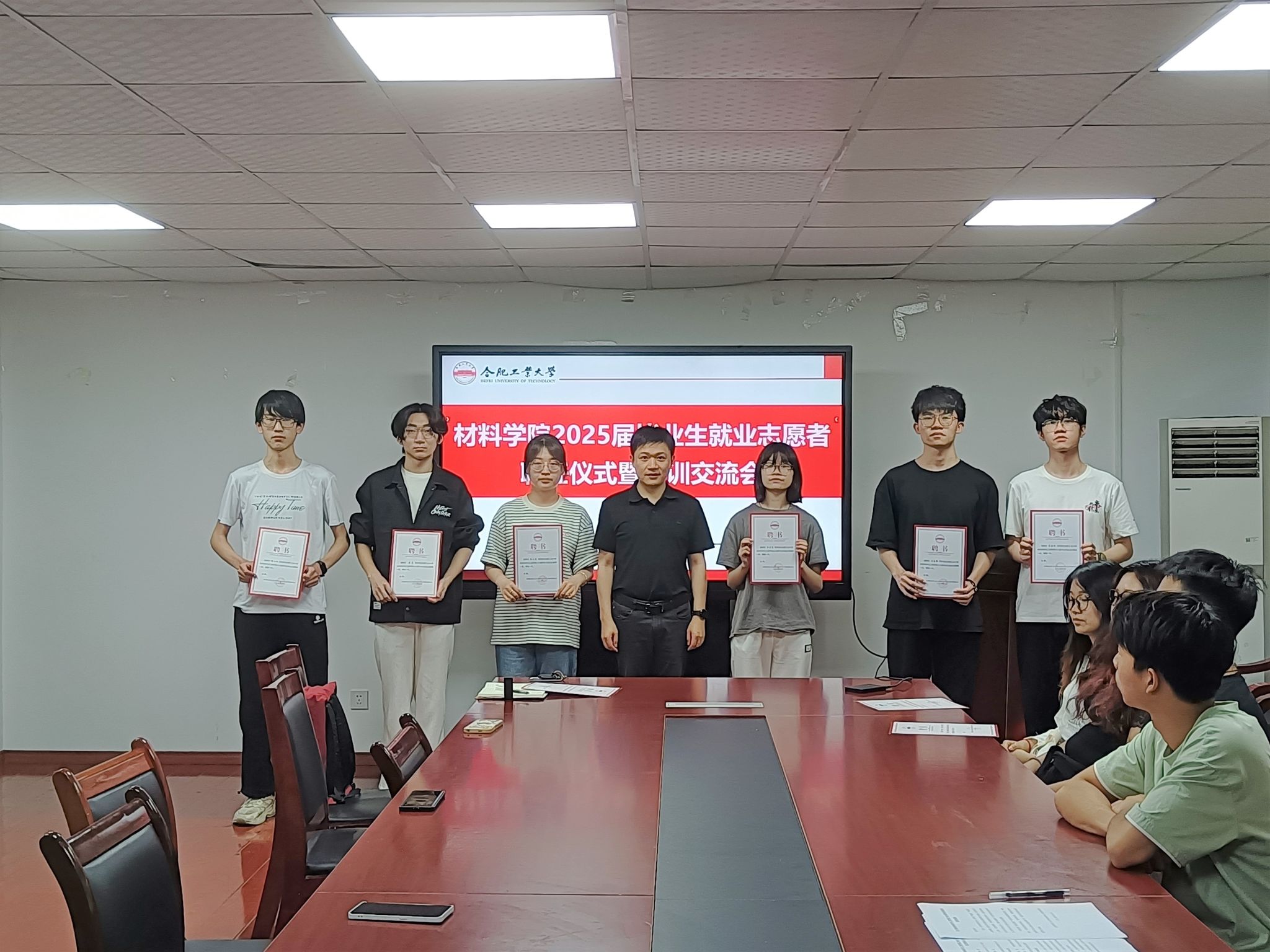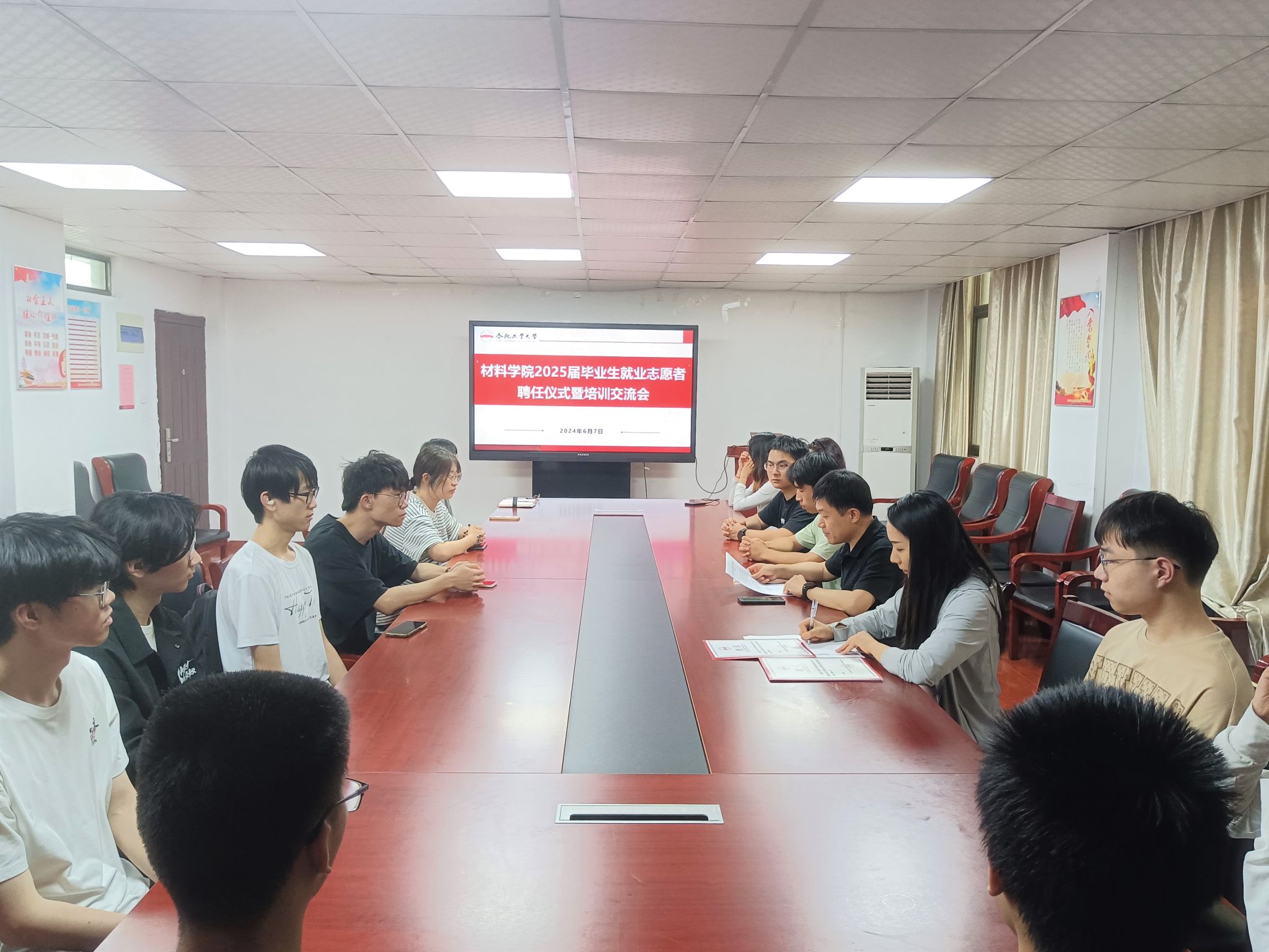 6月7日下午,jbo竞博官网登录在材料楼党员之家举办2025届毕业生就业志愿者聘任仪式暨培训交流会。学院相关负责人、2025届毕业班辅导员和全体就业志愿者参会。