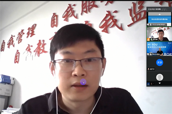 5月27日下午,jbo竞博官网登录邀请京东方科技集团人才确保中心华东招聘部部长洪光东在腾讯会议平台作《职业生涯专题讲座》,学院2017级全体同学参加讲座。