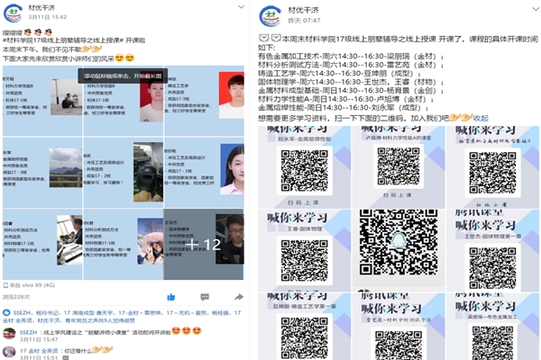 践行雷锋精神,立足促进学业发展——积极开展“材优干济”系列学风建设。为做好疫情期间线上教学服务工作,jbo竞博官网登录以“学优创优,做最美材料人”为主题,立足年级QQ公众号、腾讯课堂等网络平台,建立线上学业帮扶平台,积极组织学生党员、学生骨干发挥榜样示范作用,先后推出朋辈辅导之“笔尖课堂” “知识点短视频分享” “小讲师特色课堂”等主题学风建设活动,通过分享优秀习笔记、学习经验、学习成果,加强朋辈辅导帮扶力度,帮助学生养成良好的线上学习习惯,对线上学习困难学生,开展“特色小课堂”线上朋辈交流答疑,营造了良好的线上学习氛围。