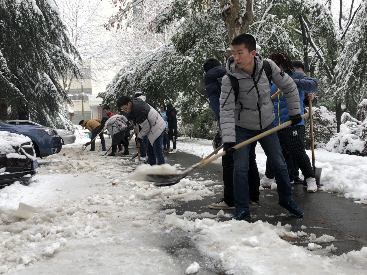 新年伊始,合肥迎来强降雪,工大校园内积雪深厚,严重影响师生出行。雪后第二天,jbo竞博官网登录2015级本科生党支部的学生组成志愿小分队,从行政楼借来工具,火速加入到除雪队伍中去。所有学生分成两组,分别从至善路的两端开始除雪,将路中间的雪堆积到道路两旁,并将停车位前的积雪堆到不妨碍车辆进出的位置。辅导员周矗老师身先士卒,同学生一起劳动,在冰冷的雪地里,同学们丝毫没有怠慢的情绪。经过一个半小时的努力,至善路已经可以正常通车行走。