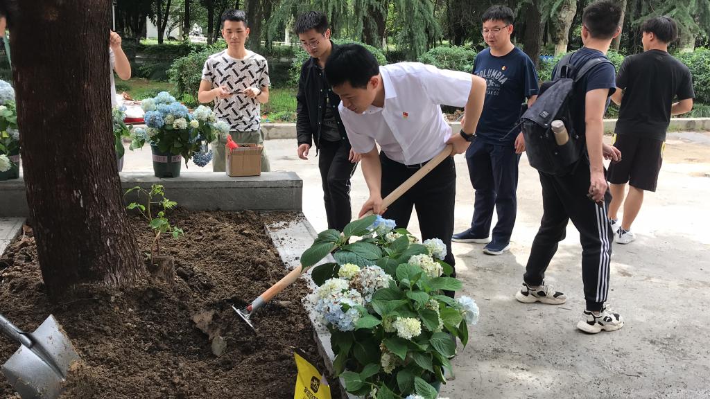 为庆祝中国共产党建党100周年,在党史学习教育中结合学校关于“爱校荣校”和“我为群众办实事”的要求,充分发挥劳动教育在立德树人中的重要作用,5月27日上午10时,jbo竞博官网登录机关党支部与本科生第一党支部联合开展了以“师生党员齐种花,爱校荣校办实事”为主题的党日活动。
