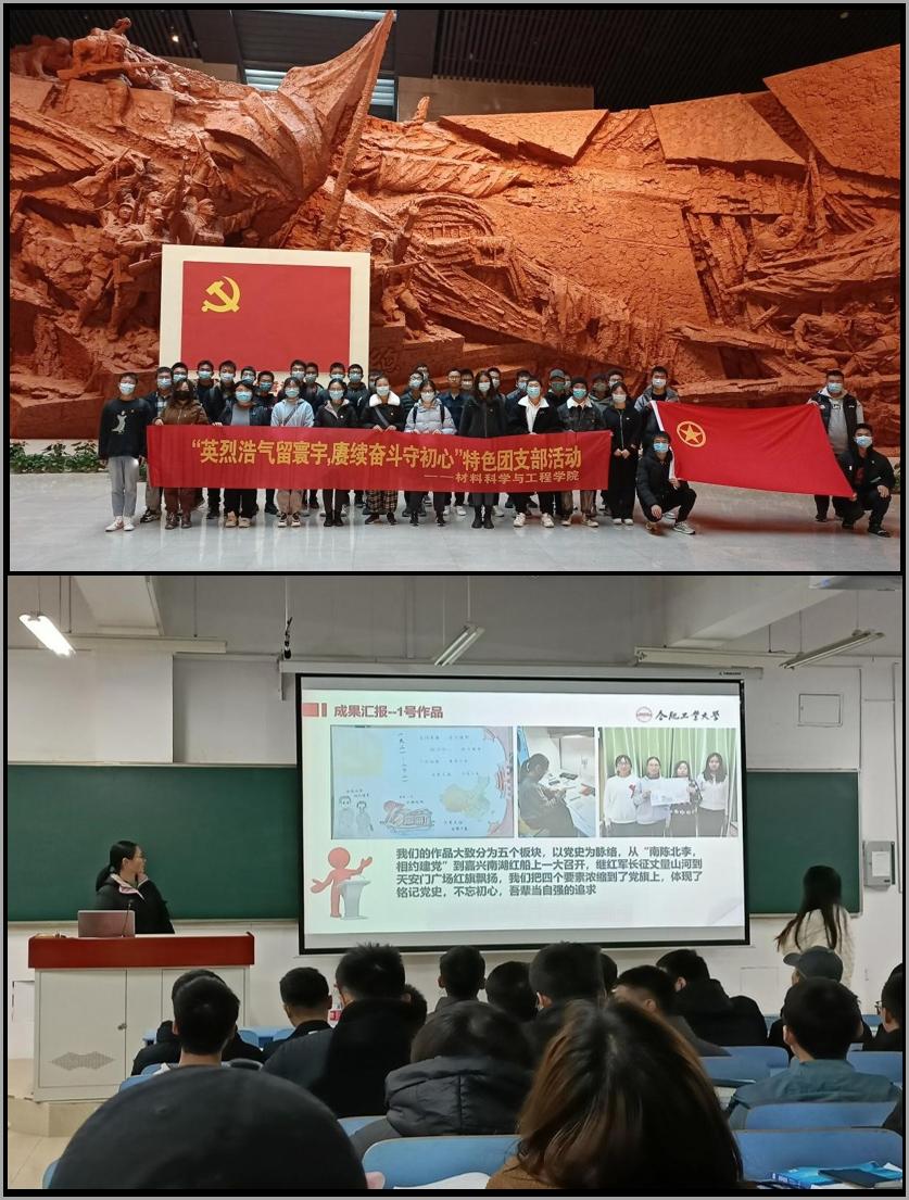 本次团日活动主要分为三大部分:分别是参观渡江战役纪念馆、交流会及“我与党旗合张影”。在渡江战役纪念馆,同学们共同追忆了那段艰苦卓绝的峥嵘岁月,并重温了入团誓词。当右拳高高举起,面对渡江战役总前委的雕塑,同学们心中热血沸腾,宣誓铿锵有力,让大家坚定了听党话、跟党走、感党恩的责任担当。最后,全班团员与党旗分别合影。大家怀着崇敬的心情凝视着党旗,感受这镰刀、锄头所蕴含的重大意义。