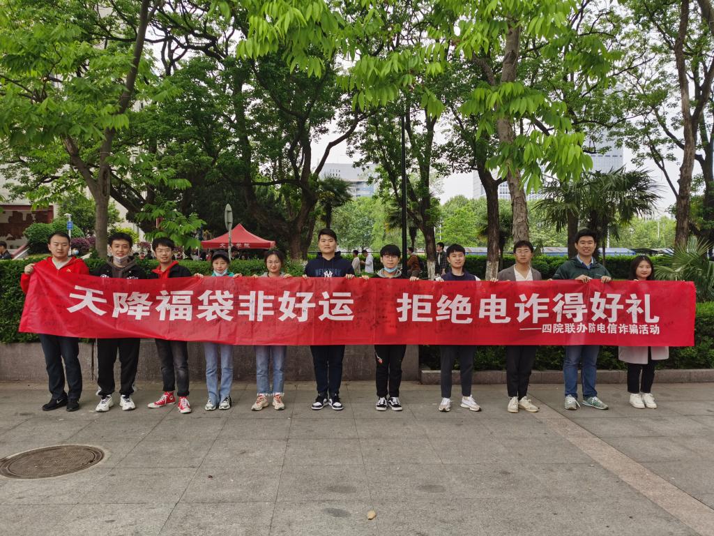 为预防复杂多变的电信诈骗事件,逐步提高大学生识别、防范意识,进一步维护学生群体的切身利益,建设和谐的校园环境。4月15日中午,由jbo竞博官网登录牵头,联合土木学院、电气学院和仪器学院共同主办的“天降福袋非好运,拒绝电诈得好礼”为主题的福袋防电信诈骗答题挑战活动在屯溪路校区德园广场旁成功举办。