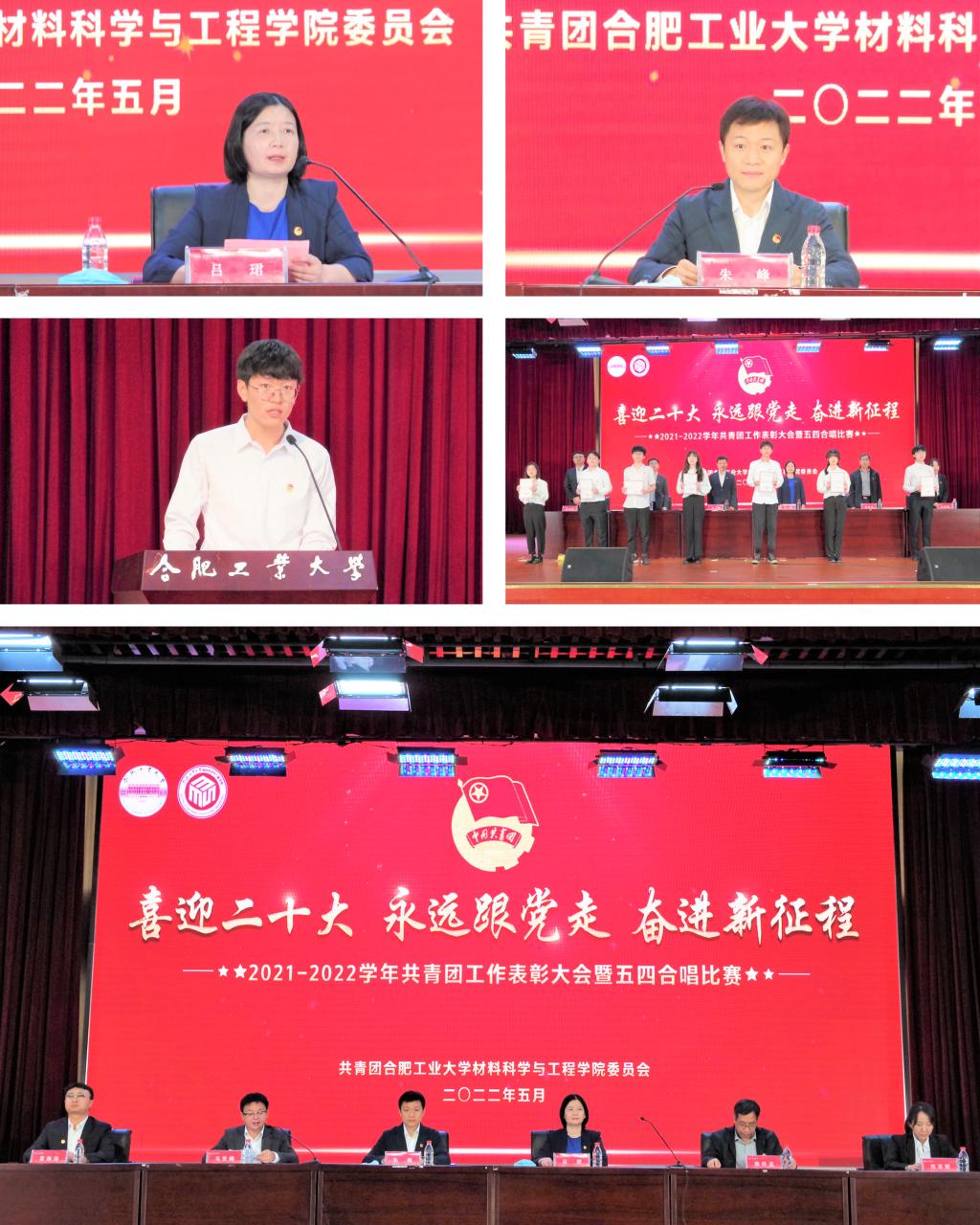 5月13日下午,jbo竞博官网登录“喜迎二十大 永远跟党走 奋进新征程”2021-2022学年共青团工作表彰大会暨五四合唱比赛在翡翠湖校区科教楼大报告厅举行。学院党委和团委相关负责人、各年级辅导员和获奖学生代表、2020级、2021级全体学生参加了本次活动。