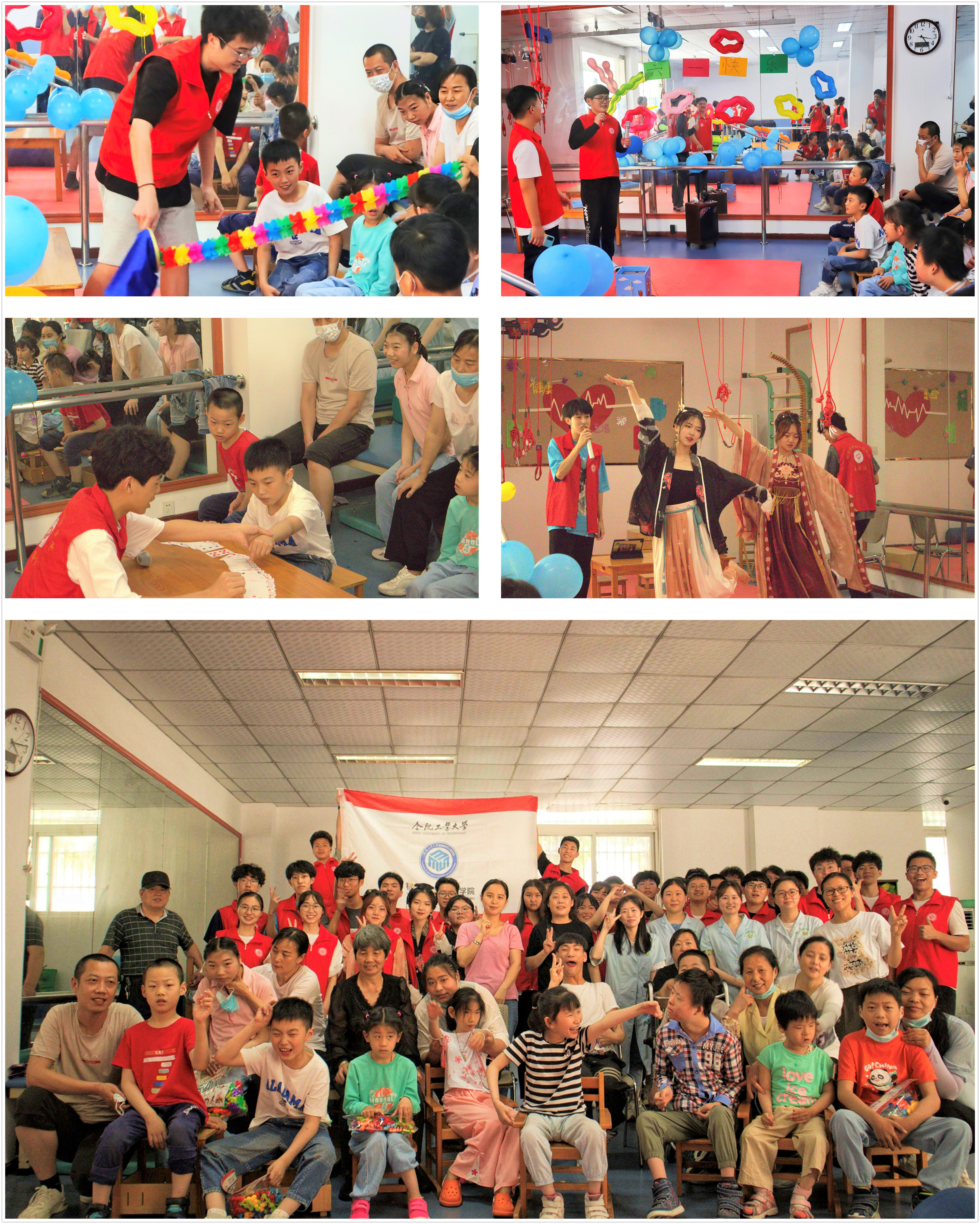 在“六一”国际儿童节来临之际,jbo竞博官网登录春晖社28名志愿者赴合肥市残疾儿童康复训练中心组织开展“飘扬六一梦想,守护童年之花”主题志愿服务活动,带领残障儿童们度过了一个欢快的儿童节。
