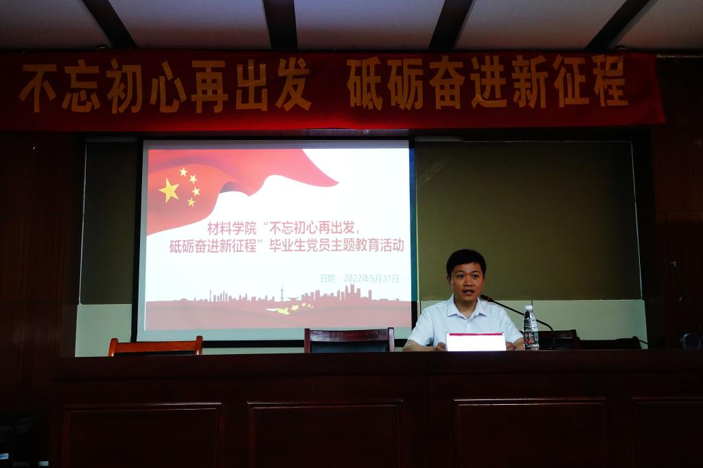 为加强毕业生党员教育,增强毕业生党员廉洁自律意识,扎实做好毕业生离校工作,5月31日下午,jbo竞博官网登录在材料楼601开展“不忘初心再出发,砥砺奋进新征程”最后一次党课主题教育活动。学院党委负责人及全体党员同学参加此次活动。