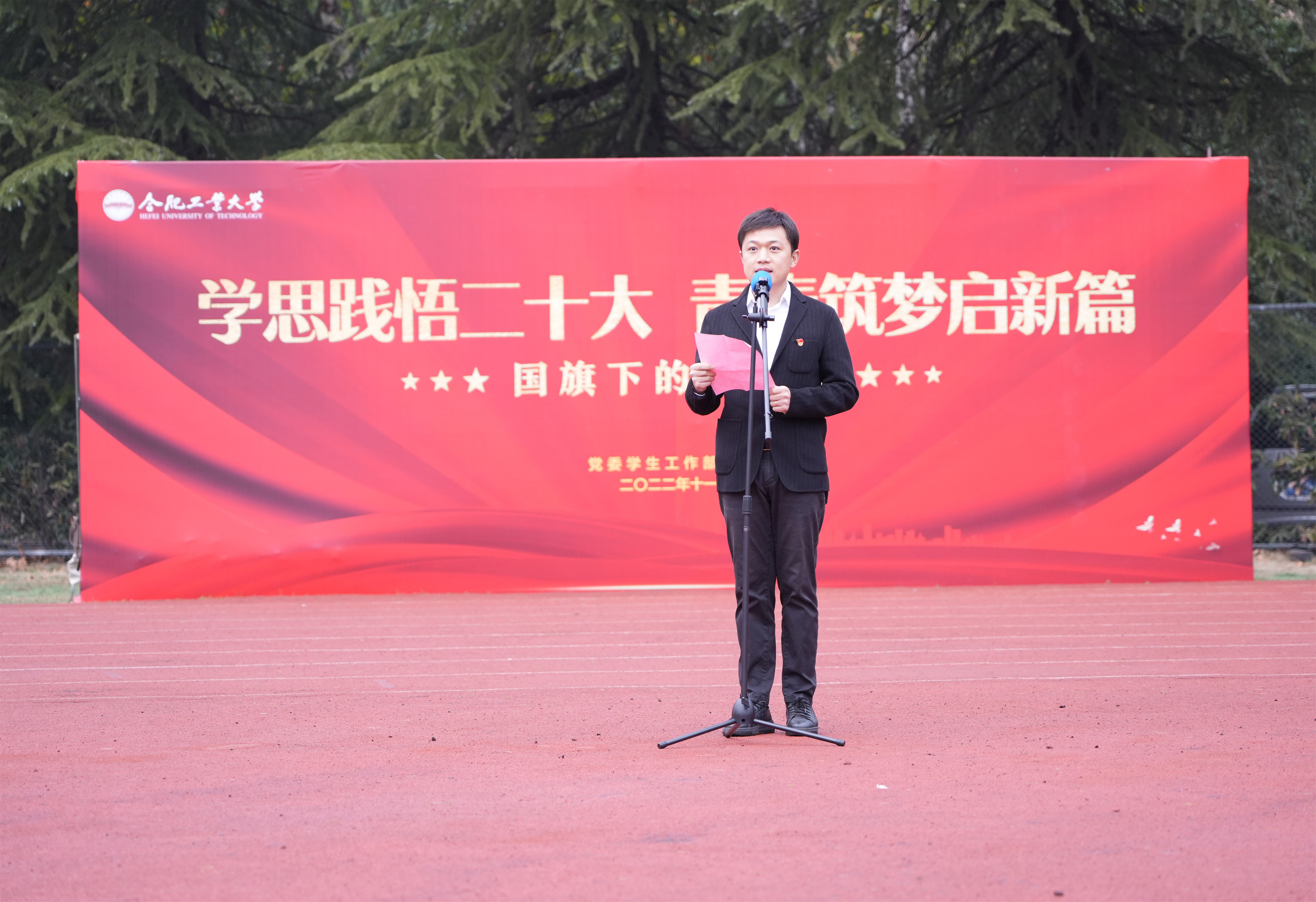 11月14日清晨,jbo竞博官网登录在屯溪路校区举行了以“学思践悟二十大 青春筑梦启新篇”为主题的升旗仪式暨国旗下的思政课主题教育活动。学院相关负责人、2019级、2020级全体本科生和研究生参加活动。