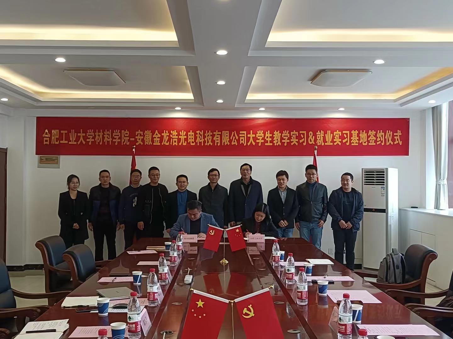 会上,双方领导签署《jbo竞博官网登录大学生就业实习基地协议书》、《jbo竞博官网登录-安徽金龙浩光电科技有限公司大学生教学实习基地协议书》。