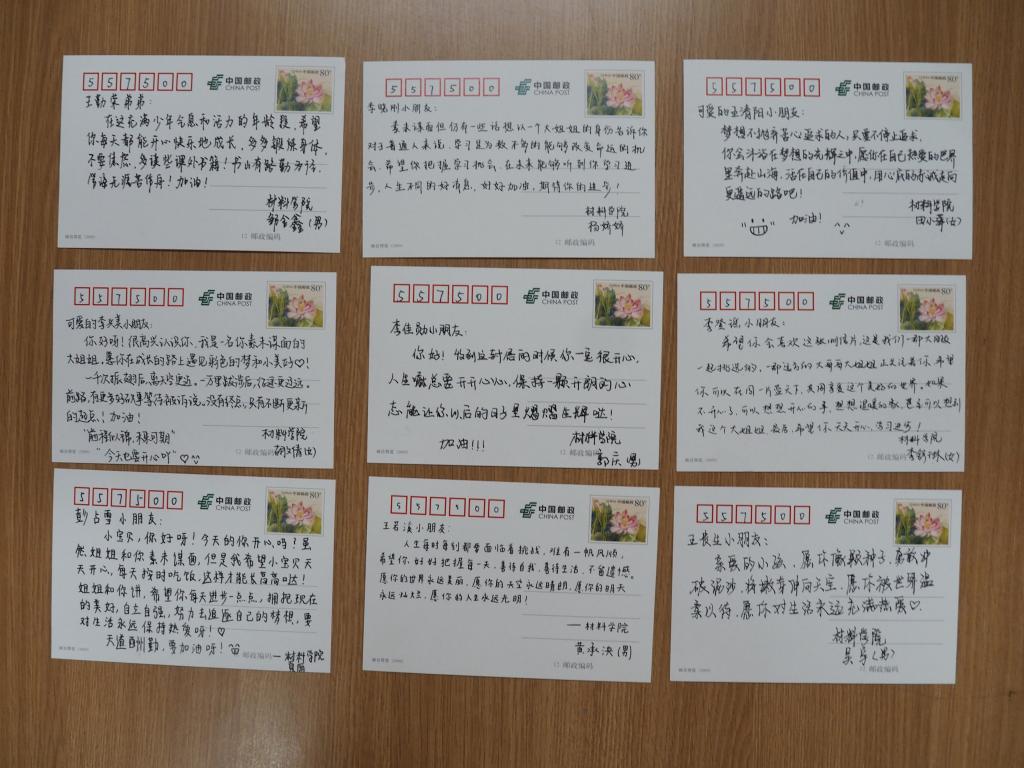 4月13日,学院研究生会成员和材物化研究生党支部的党员们齐聚jbo竞博官网登录小红楼103,为长青第二小学五年级(2)班的27名小学生精心挑选jbo竞博官网登录主题的明信片,并认真书写了对孩子们想说的话,为孩子们送去美好的祝福。有的同学们讲述了最近学习生活中的趣事,有的同学描绘了工大校园的美丽景色,有的同学分享了大学生活的美好……在明信片的最后,大家不约而同地写下了对丹寨孩子们的鼓励与祝福,希望他们能够健康快乐地成长。此外,学院还为山区小朋友们准备了学习工具大礼包,在精神上给予鼓励的同时,也为小朋友们送上最需要的物资,帮助他们更好的求学与成长!