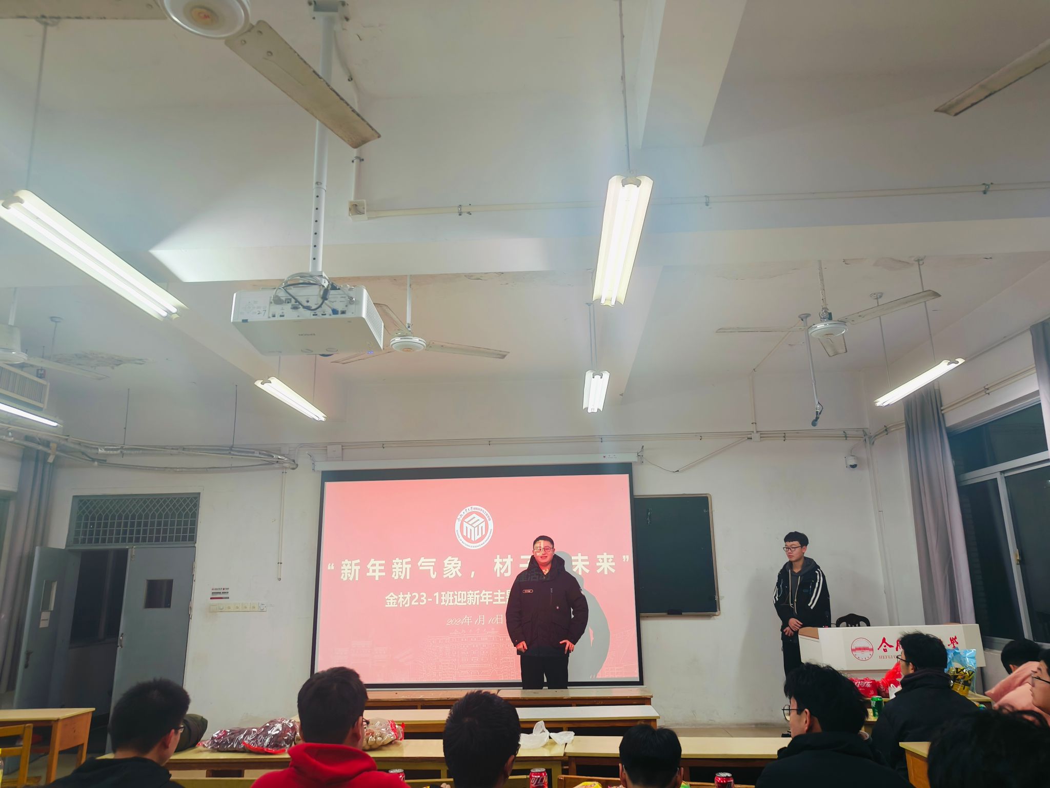 为庆贺新年到来,巩固班级团结,缓解期末压力,1月10日晚,jbo竞博官网登录组织金属材料工程23-1班于翠七教302举办了主题为“新年新气象,材子向未来”迎新年主题团建活动,金属材料工程23-1班40名同学及班主任谢思瑶参与本次活动。