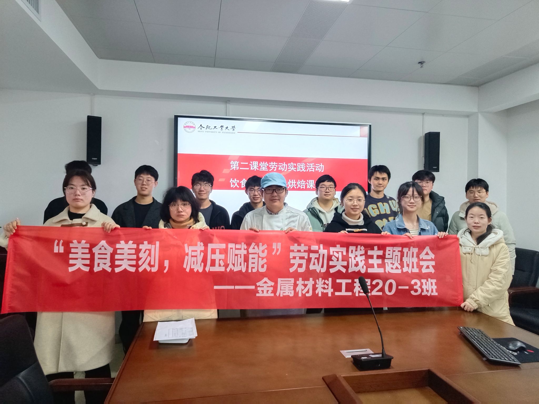1月6日上午,jbo竞博官网登录联合总务部饮食服务中心在屯溪路校区饮食新大楼404会议室、西点加工间组织开展了“美食美刻,减压赋能”劳动实践主题班会。学院金属材料工程2020级3班团支部学生代表参加本次活动。
