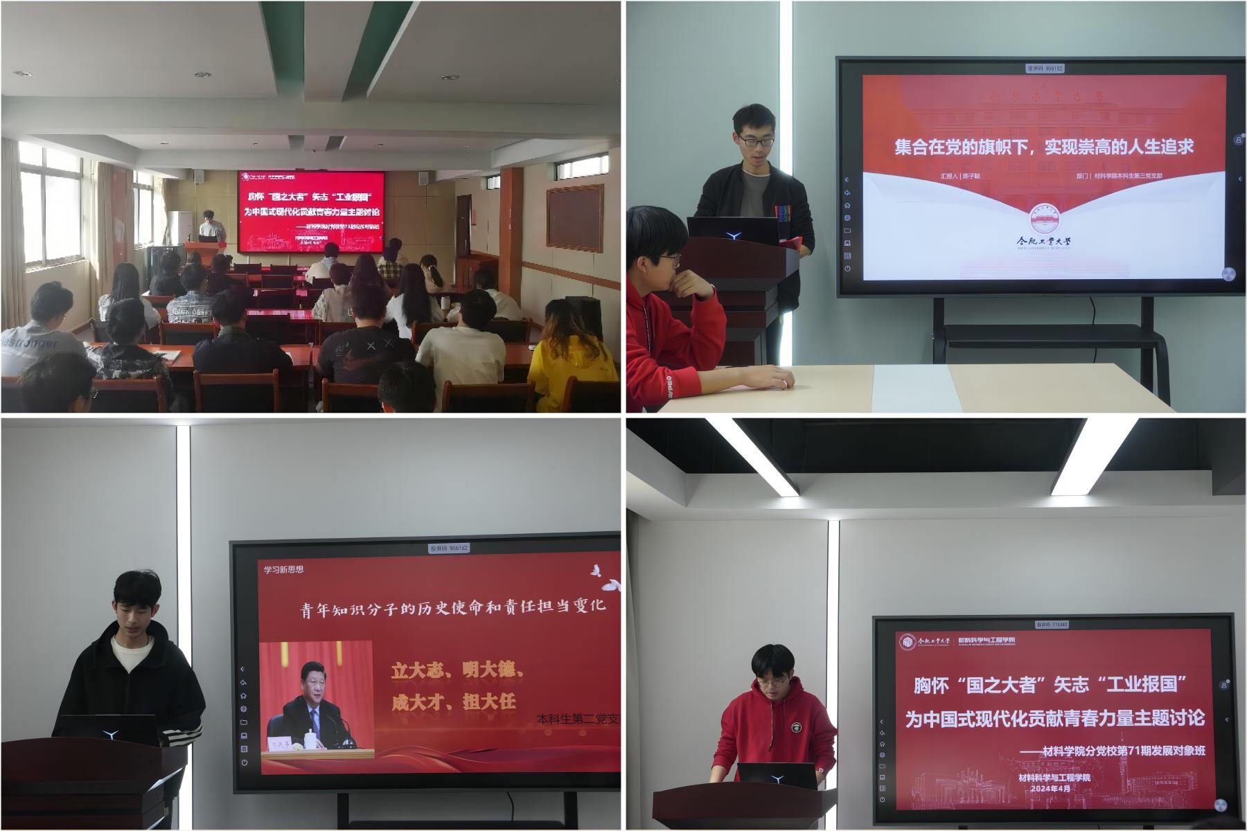 为深入学习党的创新理论,引导学生自觉听党话、跟党走,4月10日下午,jbo竞博官网登录组织分党校71期发展对象班分校区集中开展主题为“胸怀‘国之大者’,矢志‘工业报国’,为中国式现代化贡献青春力量”集中学习讨论。