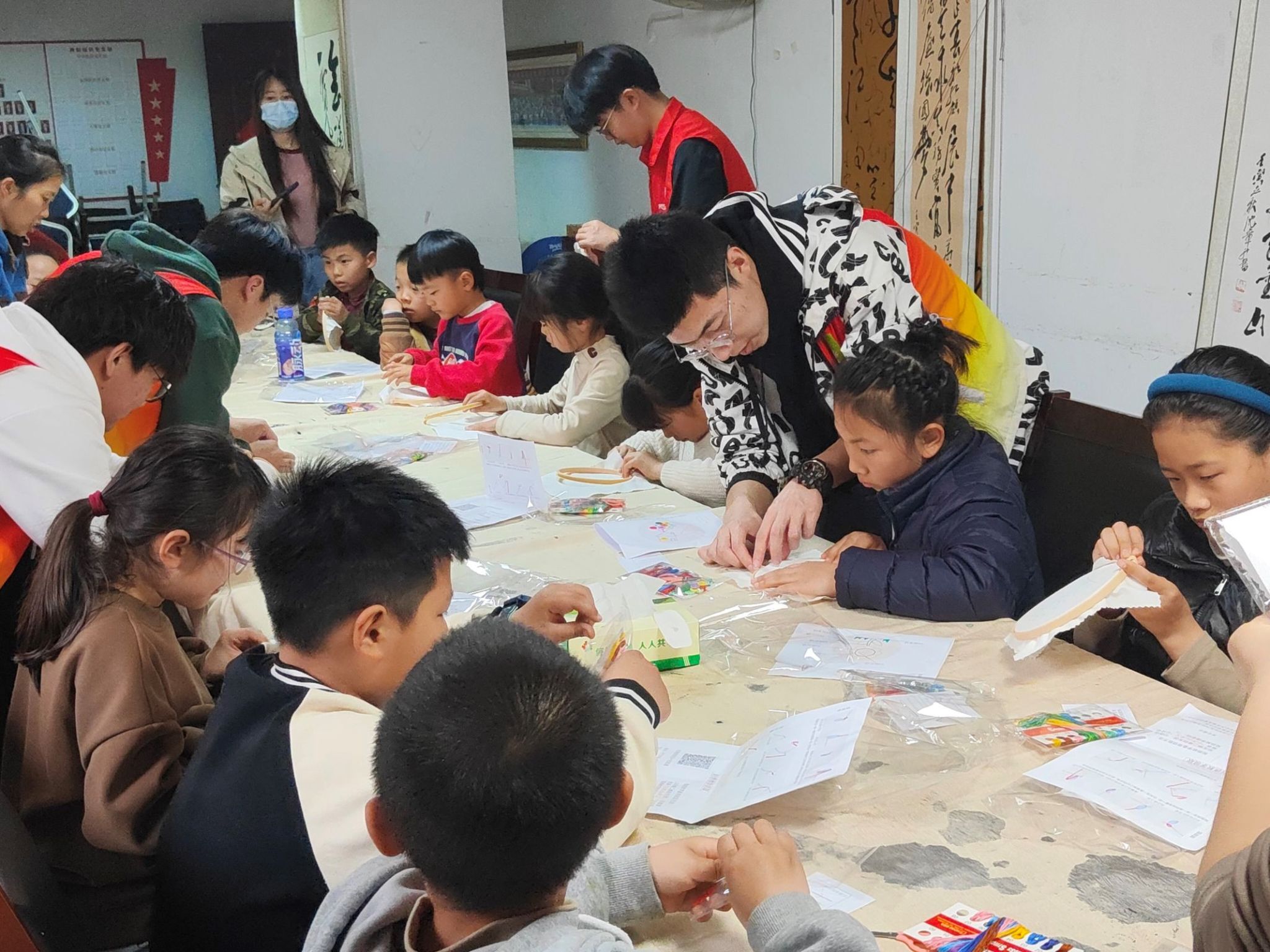 3月24日下午,jbo竞博官网登录心晴社大学生心理工作室6名成员前往合肥市天门湖社区,协助社区居委会举办了“巧手童趣,百变纽扣”手工坊实践活动。