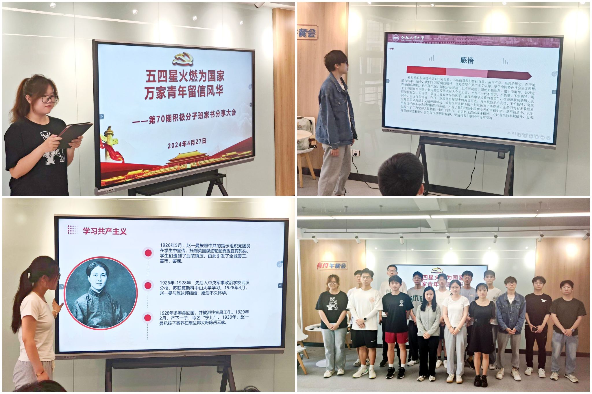 5月11日,jbo竞博官网登录在翡翠湖校区四号楼学生社区沙龙空间举办“五四星火燃为国家,万家青年留信风华”新时代青年家书诵读活动,jbo竞博官网登录第70期全体积极分子参加活动。