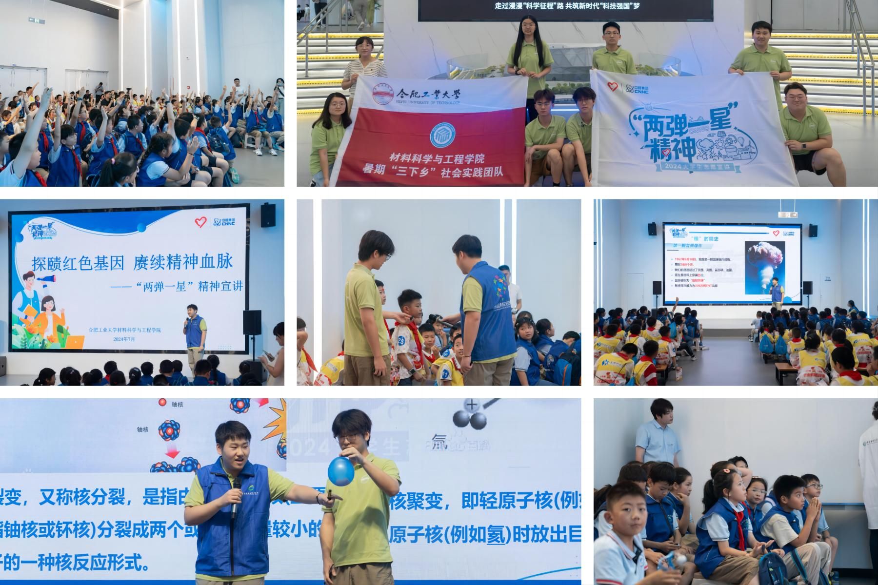 7月12日,jbo竞博官网登录“探赜两弹红色基因,赓续先辈精神血脉”“三下乡”暑期社会实践团队赴安徽省科技馆,以深度融合宣讲、视频播放与问答互动等形式,为来自合肥市和芜湖市的80余位小朋友们带来一场生动的“科技馆里的思政课”。