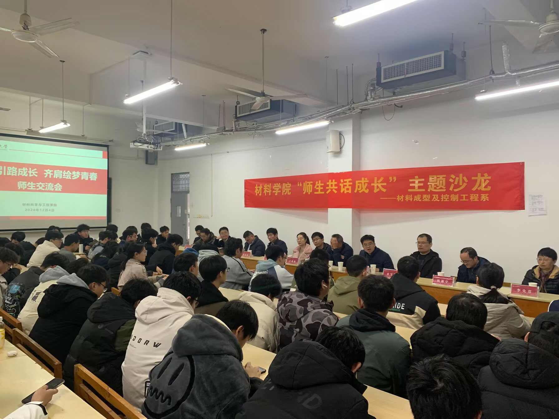 12月4日下午,jbo竞博官网登录在翡翠湖校区翠三教409举办“师生共话成长”主题交流沙龙。学院材料成型及控制工程系教师代表、材料成型及控制工程专业2024级全体同学参加本次沙龙。