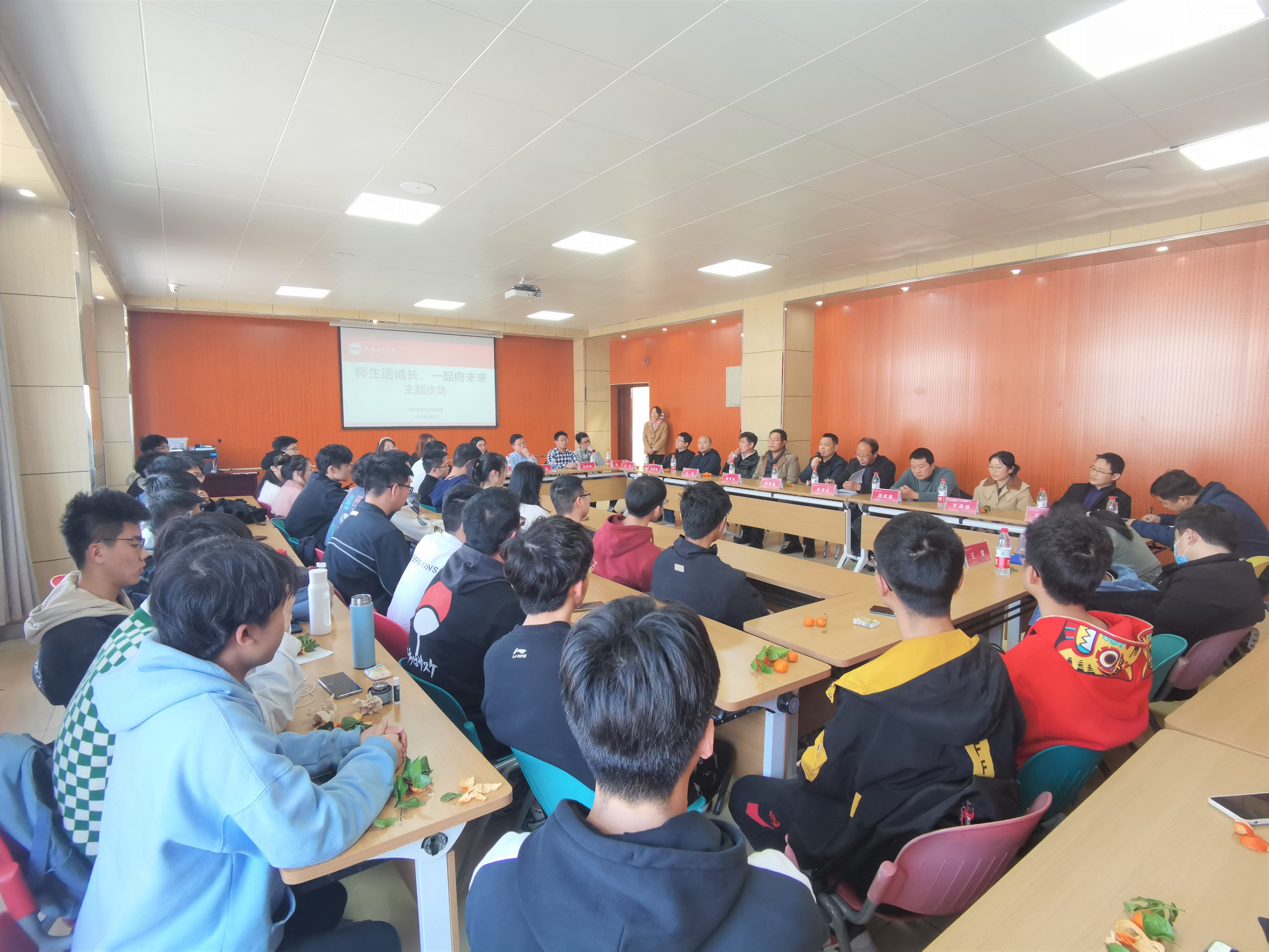 3月9日下午,jbo竞博官网登录在综合楼302举办了“师生话成长,一起向未来”主题沙龙。材料物理及新能源材料与器件系全体教师和材料物理专业20-1班全体同学面对面,共话大学成长故事。