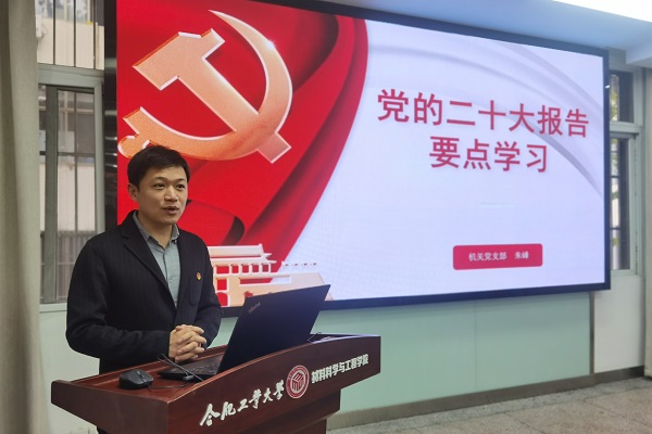 为充分认识学习宣传贯彻党的二十大精神的重大意义,全面准确学习领会党的二十大精神核心要义,11月17日上午,jbo竞博官网登录机关党支部在jbo竞博官网登录综合服务中心210会议室组织专题党课学习。学院党委副书记朱峰应邀讲党课,支部全体党员参加教育学习会。
